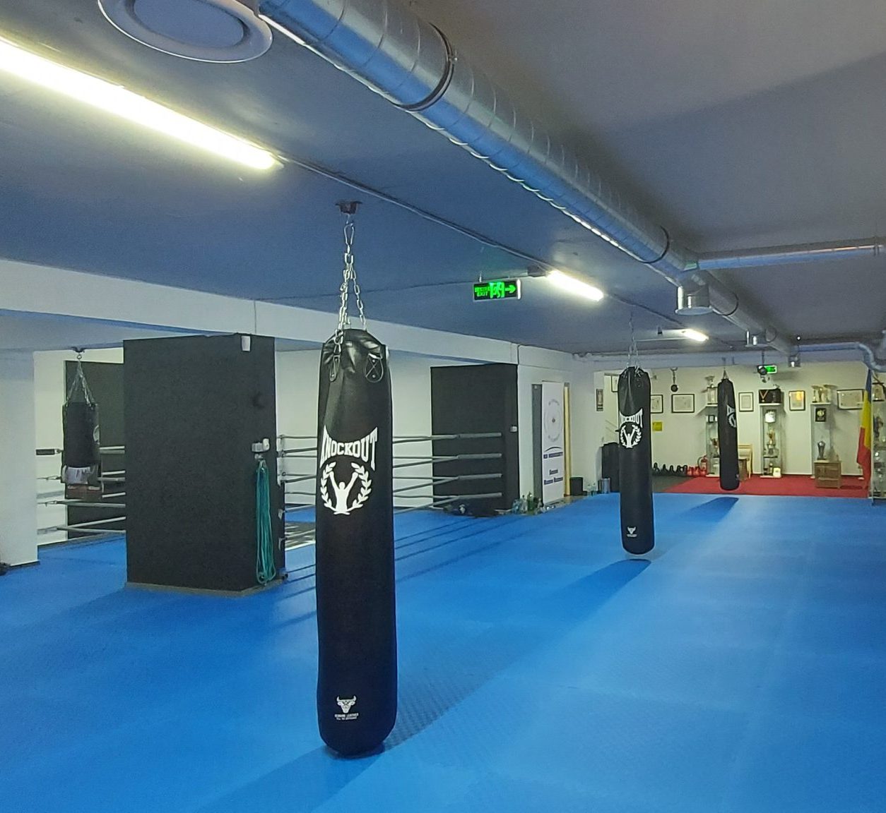 - Zona destinata antrenamentelor de arte martiale – cu tatami, ring, saci, paduri, palmare, diverse alte mijloace tehnice